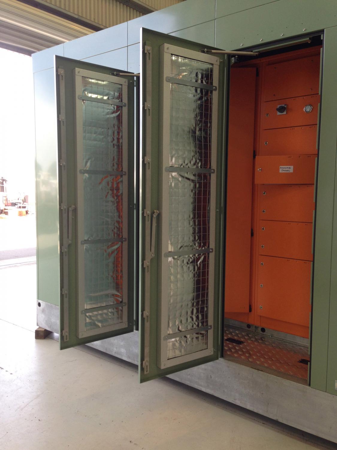 POWINS’ design facilitates exceptionally shorten factory assembly periods making it ideal for short term emergency response services or long term fix plant applications. The kiosk is designed to accommodate a variety of MV and LV equipment in an outdoor weatherproof enclosure with segregation between compartments. The modular design makes allowance for multiple compartments as required, each sized to accommodate the specific equipment.