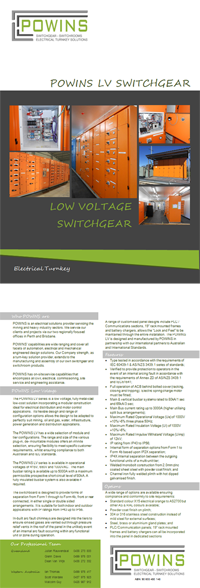 For more information on our LV Switchgear, contact us for a brochure or data sheet.