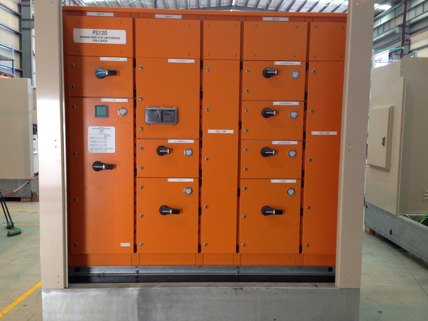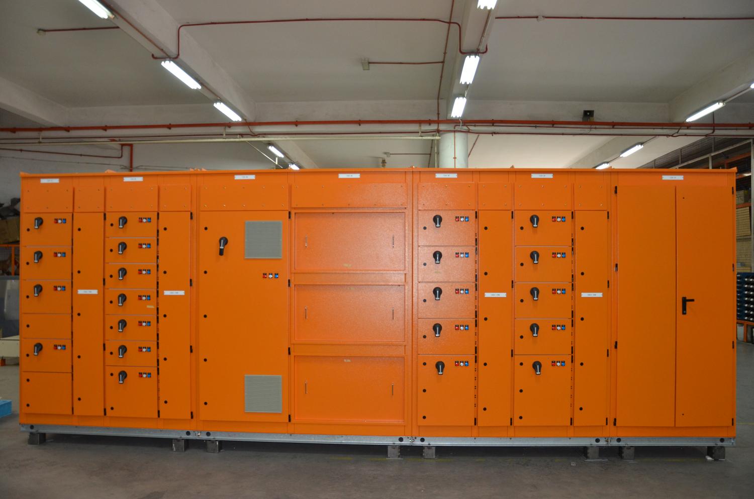 The POWINS ECO-BLOCK PLUS series of switchgear is available in operational voltages of 415V, 690V and 1000VAC. The main busbar rating is available up to 5000A with a maximum permissible prospective short circuit level of 80kA. A fully insulated busbar system is also available if required. The LV switchgear is offered in Form 1 through to Form 4b, front or rear connected, in either single or double sided arrangements. It is suitable for both indoor and outdoor applications with IP ratings from IP43 up to IP56.
